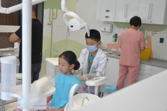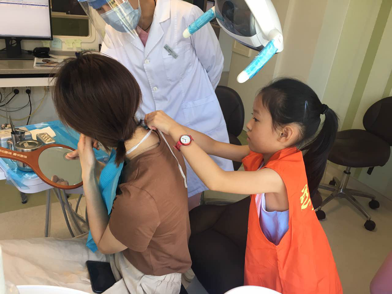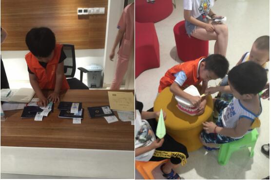 活動(dòng)中,醫(yī)院為小記者提供了口腔醫(yī)生助理、前臺(tái)客服、自助機(jī)講解員、樓層客服、小小美容室、咖啡吧小助理、口腔保健品銷售員等七個(gè)崗位,在進(jìn)行過(guò)簡(jiǎn)單的培訓(xùn)后,30名慈報(bào)小記者迅速投入到自己的工作中。