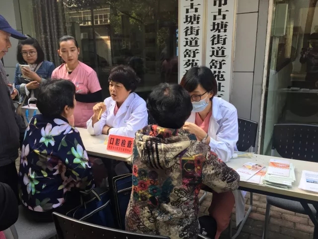 講座結(jié)束后,華陽(yáng)口腔的醫(yī)生為社區(qū)居民進(jìn)行口腔檢查,社區(qū)居民也非常關(guān)注牙齒問(wèn)題。