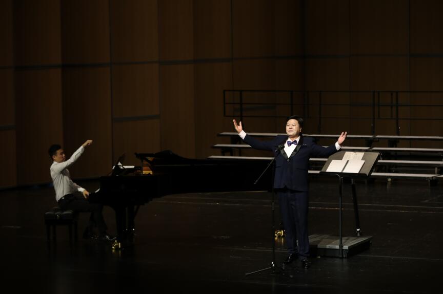 華陽快樂之聲合唱團名譽團長陳建平帶來的男聲獨唱《我愛你中華》飽含深情,常駐鋼琴伴奏徐卓帶來的鋼琴獨奏《在那遙遠的地方》剛?cè)岵?、行云流水,特邀歌唱家王碧華帶來的女聲獨唱《感恩》如潺潺流水般沁人心脾,特邀歌唱家于浩磊帶來的男聲獨唱《我像雪花天上來》渾厚有力,響起了陣陣掌聲,將現(xiàn)場氣氛推向高潮。