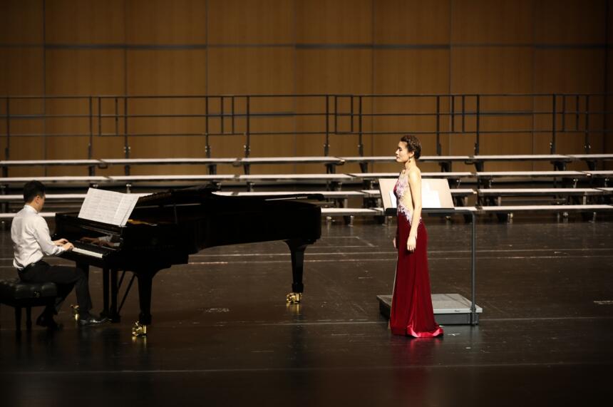 音樂會以一曲抒情誠摯的贊歌《祖國慈祥的母親》拉開帷幕,合唱團成員和指揮楊劍鋒以及常駐鋼琴伴奏徐卓為大家?guī)硪粓龈咂焚|(zhì)的視聽盛宴。