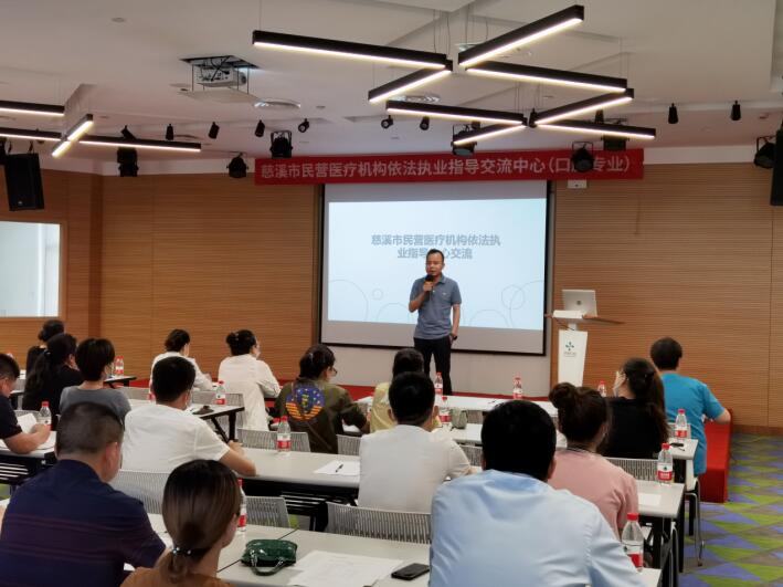 2020年7月16日,慈溪市民營(yíng)醫(yī)療機(jī)構(gòu)依法執(zhí)業(yè)指導(dǎo)交流中心(口腔專業(yè))在華陽(yáng)口腔醫(yī)院舉辦依法執(zhí)業(yè)專題交流活動(dòng)。慈溪市部分口腔診所、門診部、民營(yíng)醫(yī)院口腔科共45名口腔從業(yè)人員參加會(huì)議,指導(dǎo)中心主任、華陽(yáng)口腔醫(yī)院院長(zhǎng)柴利國(guó)主持會(huì)議。