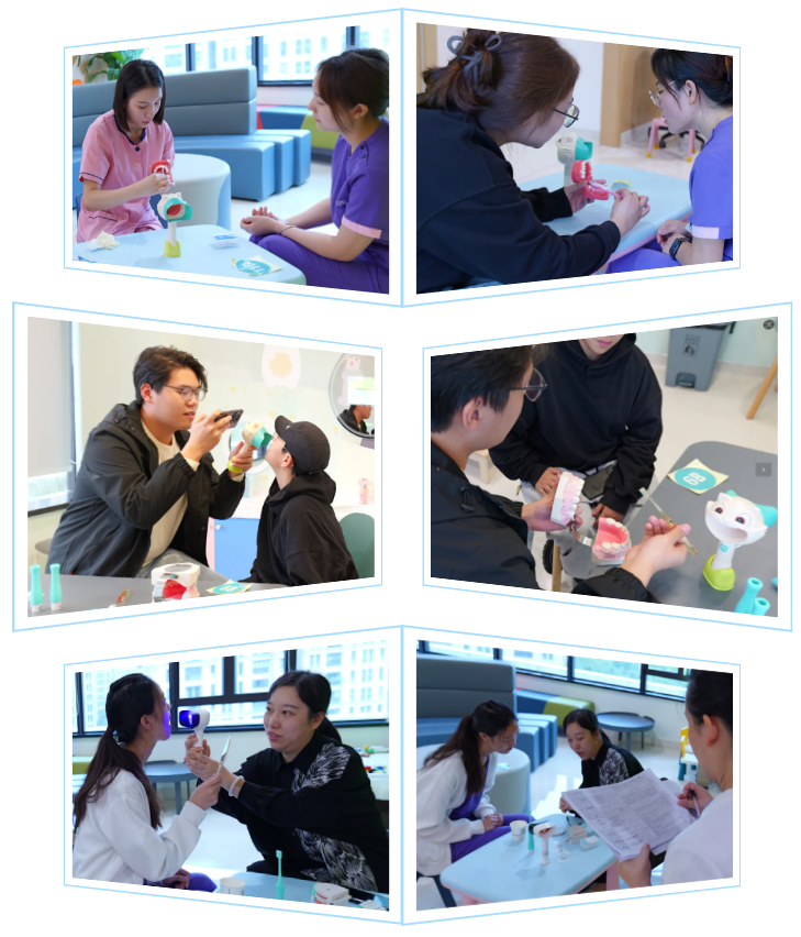 比賽現(xiàn)場氣氛熱烈,參賽選手們抽簽組隊(duì),分別飾演“刷牙指導(dǎo)工作人員”和“刷牙選手”兩個(gè)角色進(jìn)行情景演練。參賽選手們紛紛亮出專業(yè)技能實(shí)力,將復(fù)雜的醫(yī)學(xué)知識轉(zhuǎn)化為通俗易懂的語言。