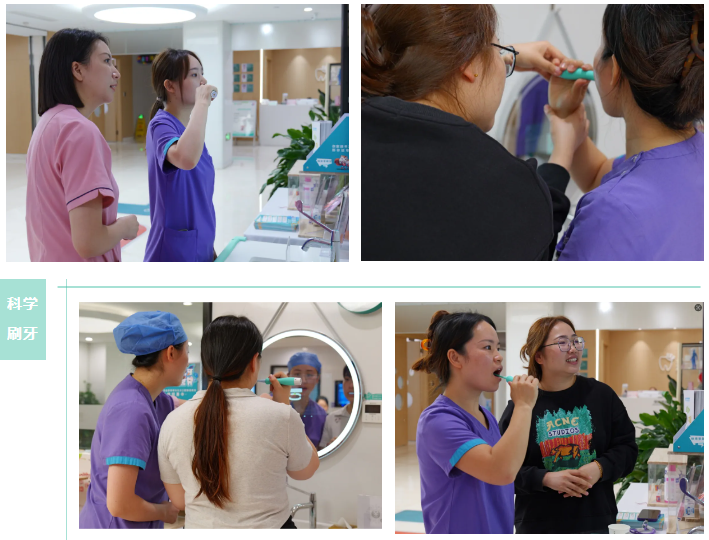 刷牙指導(dǎo)工作人員向刷牙選手了解平時(shí)刷牙習(xí)慣、檢查口腔健康情況并提供個(gè)性化的指導(dǎo)和治療,比如針對難以清潔的區(qū)域提出特別的清潔技巧、演示潔牙工具正確使用方式。