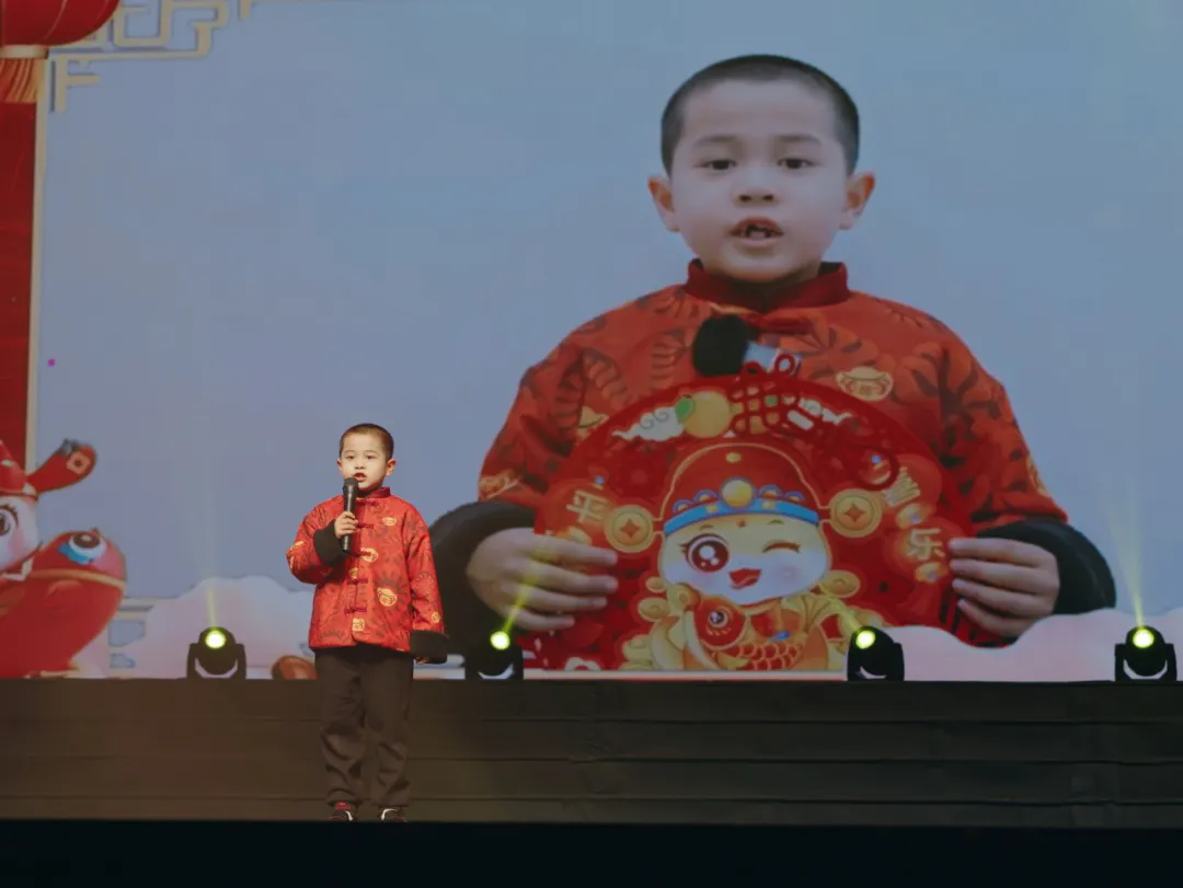 隨著倒計(jì)時(shí)的結(jié)束,柴子航小朋友來到舞臺(tái)中央,向大家送上新年祝福,純真的話語給這個(gè)夜晚注入了一股溫暖而鮮活的力量。