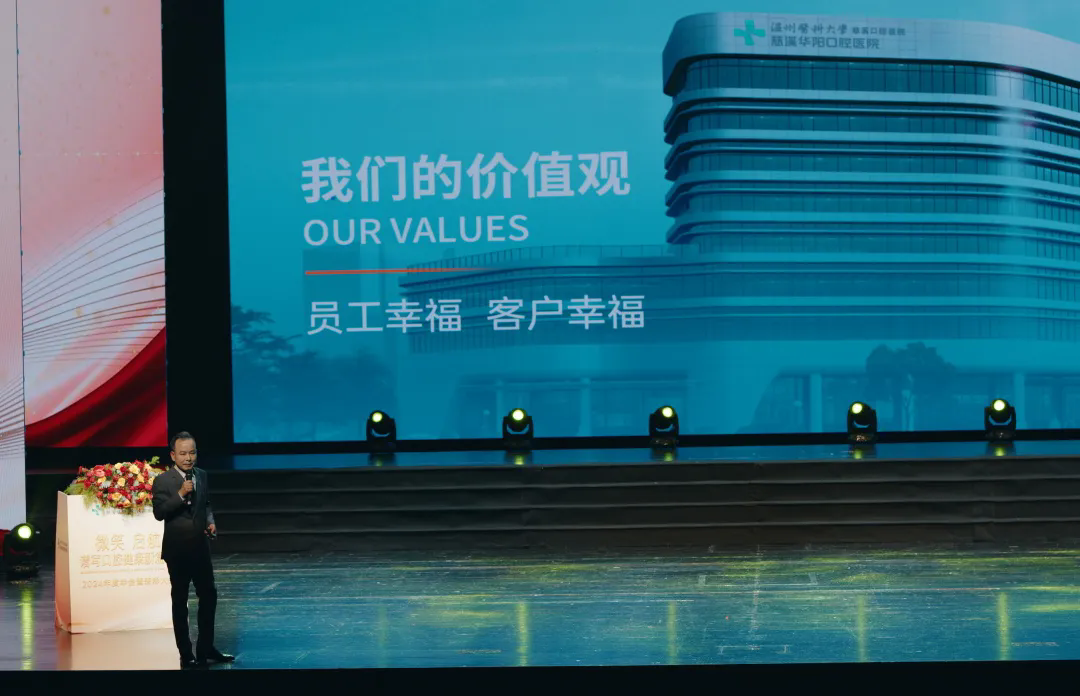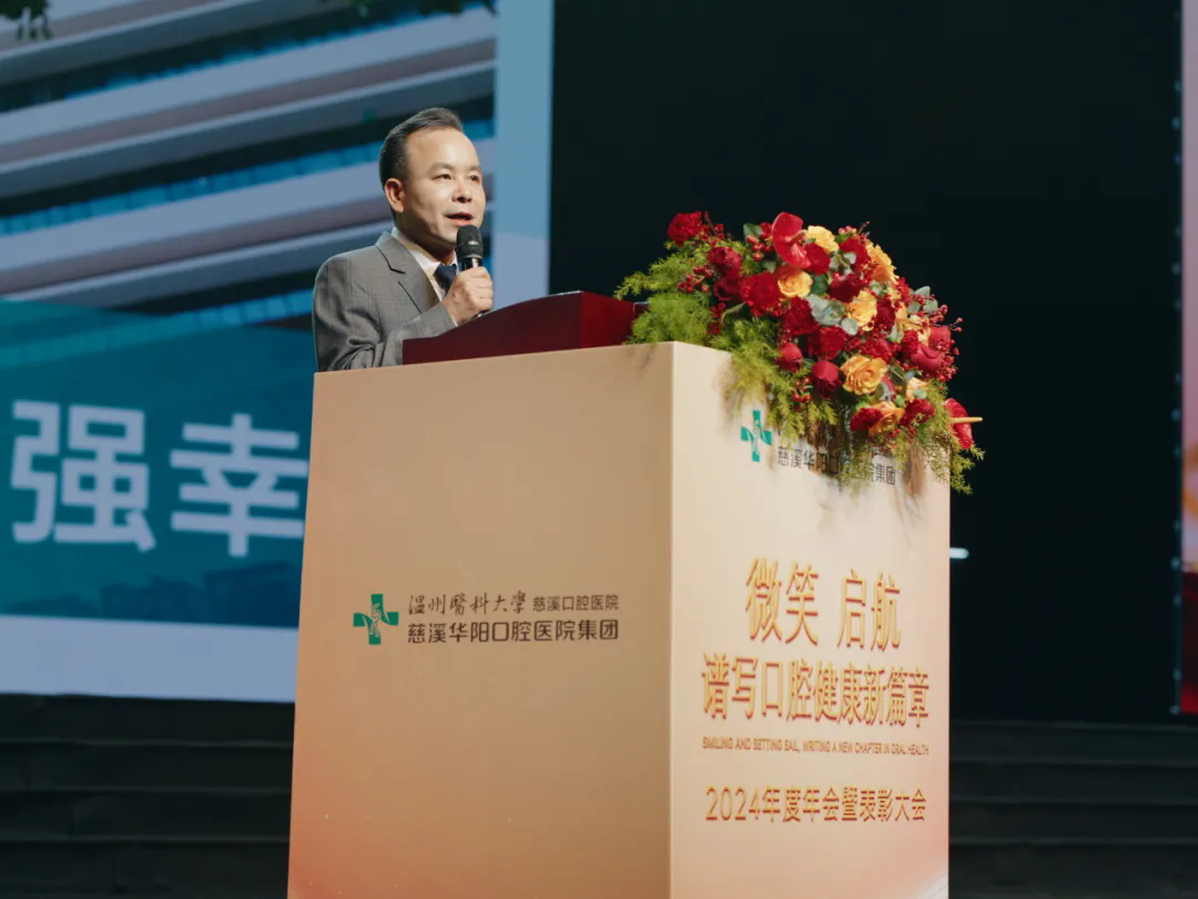 年會(huì)致辭環(huán)節(jié),溫州醫(yī)科大學(xué)慈溪口腔醫(yī)院院長(zhǎng)、慈溪華陽(yáng)口腔醫(yī)院集團(tuán)創(chuàng)始人柴利國(guó)先生向大家送上由衷的感謝與新年祝福,在《高質(zhì)量、慢增長(zhǎng)、強(qiáng)幸?!分黝}講話中,柴院長(zhǎng)對(duì)過去一年慈溪華陽(yáng)口腔醫(yī)院取得的成績(jī)、亮點(diǎn)進(jìn)行了總結(jié),同時(shí)也指出,在新的一年里將面臨更多的機(jī)遇和挑戰(zhàn)。如何與眾不同?如何實(shí)現(xiàn)差異化?柴院長(zhǎng)為大家劃明了重點(diǎn)指明了2025年乃至未來的工作思路與工作方法。