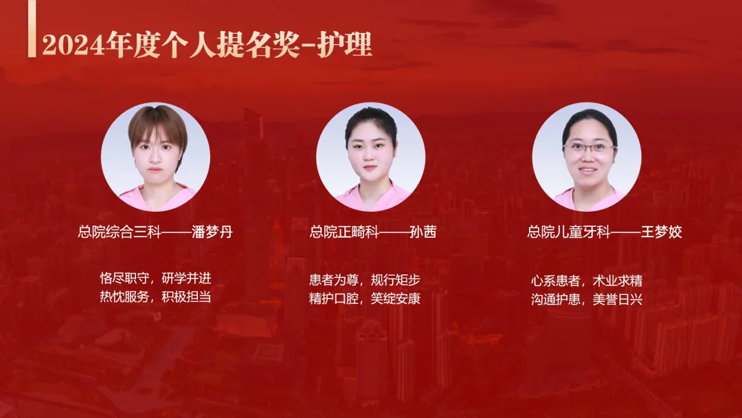 獎(jiǎng)項(xiàng)有限,付出無限,獲獎(jiǎng)?wù)邔?shí)至名歸,臺(tái)下同仁同樣是醫(yī)院發(fā)展的中流砥柱。新的一年,以獲獎(jiǎng)?wù)邽闃?biāo)桿,相信自己的價(jià)值,攜手奮進(jìn),助力為更多人帶去口腔健康照護(hù)。