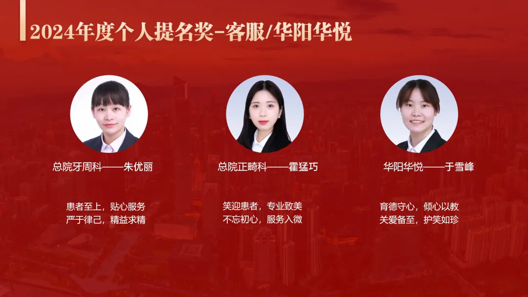 年會(huì)還舉行了高級(jí)專業(yè)技術(shù)職稱聘任儀式,這標(biāo)志著慈溪華陽(yáng)口腔醫(yī)院在人才隊(duì)伍建設(shè)方面邁出了重要一步。新聘任的醫(yī)生們將肩負(fù)起更重要的責(zé)任,為醫(yī)院的發(fā)展提供強(qiáng)大的技術(shù)支持,為口腔健康事業(yè)注入源源不斷的力量。